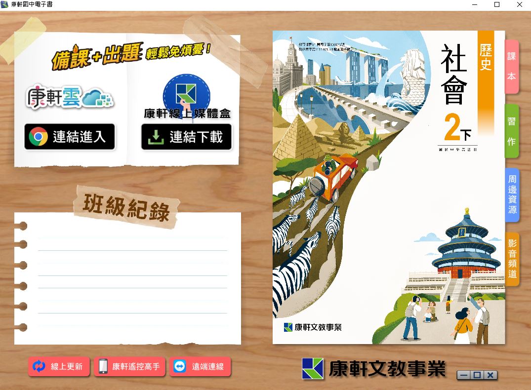 111學年下學期 國中 康軒版 歷史電子書 2年級(含課本、習作含解答、教學資源)教學光碟