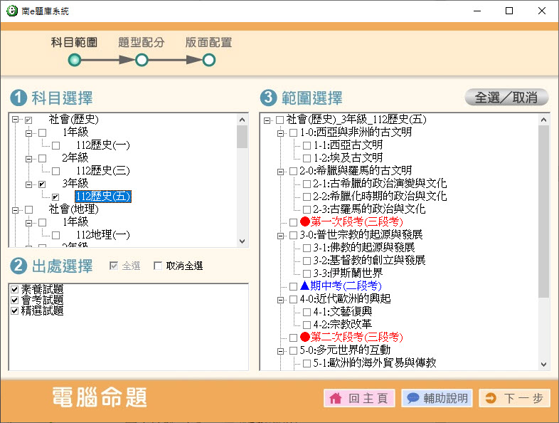 112學年上學期 國中命題光碟 南一版 1-3年級 社會(108課綱) 題庫光碟
