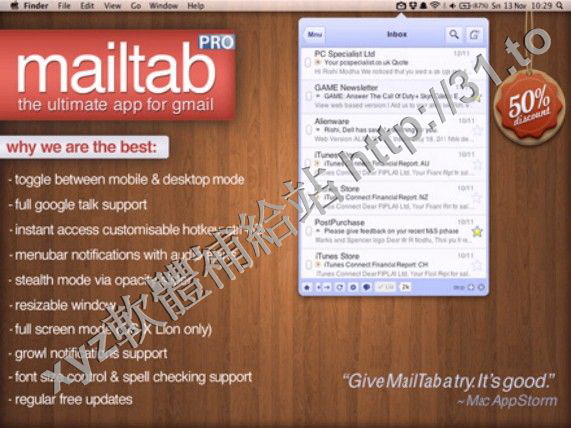 MailTab Pro for Gmail v5.2 MacOSX 英文正式版(快速訪問您的Gmail帳戶軟體)