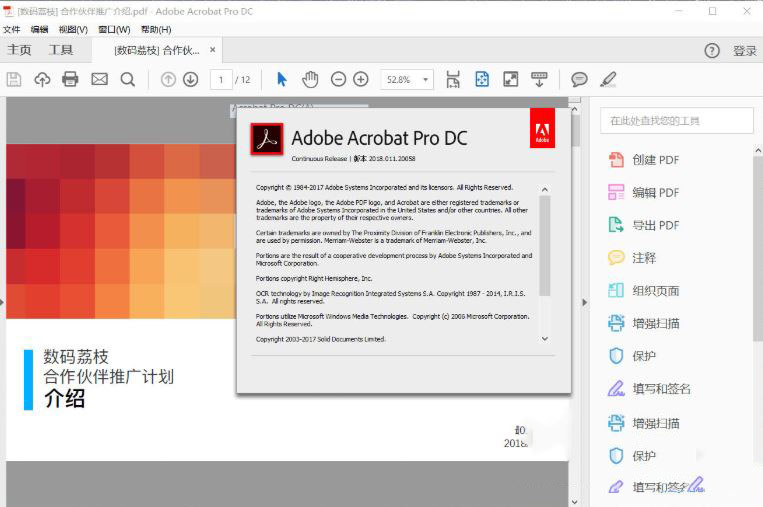 Adobe Acrobat Pro DC是Adobe公司的一款PDF編輯和閱讀軟件。它將全球最佳的PDF解決方案提升到新的高度,配有直觀觸控式介面,通過開發?大的新功能,使用戶能在任何地方完成工作。新工具中心可更簡單迅速的訪問最常使用的工具。Acrobat DC可利用photoshop?大的圖像編輯功能,將任何紙質檔案轉換為可編輯的電子檔,用於傳輸、簽字。Acrobat DC是完全重塑的全球最佳PDF解決方案的案頭版。它包括一個移動應用程序,?此您可以在任何設備上填寫、簽署以及共?PDF。