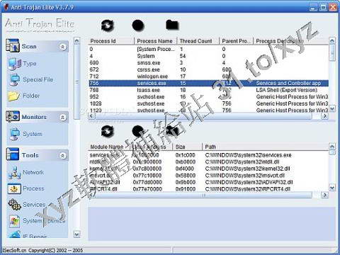過它查看網路和目前進程資訊。軟體還可以監視重要的註冊表項值的修改。